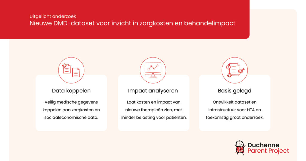 Zij brengen de zorgkosten rond belangrijke momenten in het ziekteverloop in kaart en bouwen een netwerk voor toekomstig grootschalig onderzoek. Dit vormt de basis voor duurzaam HTA-onderzoek bij DMD en helpt ook andere neuromusculaire aandoeningen.
